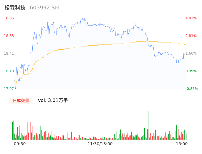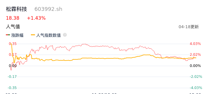 04月18日,松霖科技收报18.38,股价涨幅1.43%,成交金额5632.21万元,换手率0.76%。