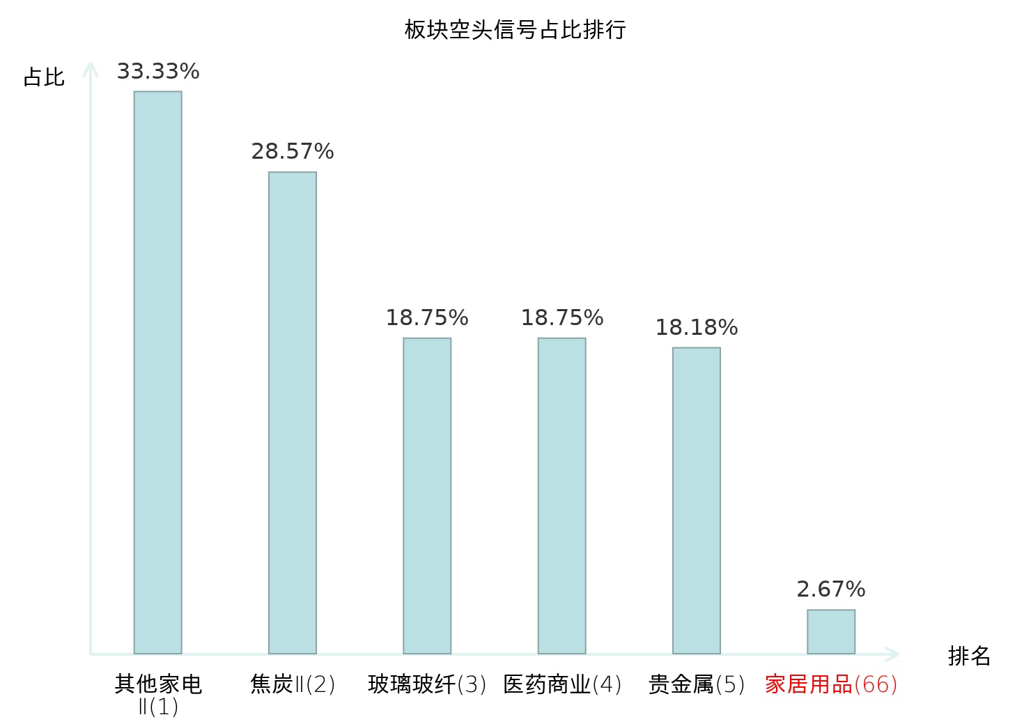 全市场所有行业板块中主力空头信号占比排名中,其他家电Ⅱ板块位居第一。工业金属板块名次提升最快,较昨日上升114位。