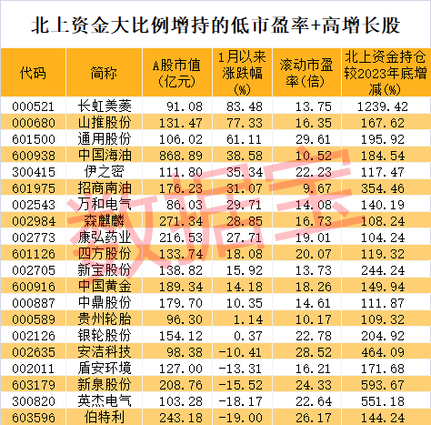 从增减持的幅度来看,据数据宝统计,截至5月7日,今年以来北上资金增持超亿元的股票中,与2023年底相比,83股持仓数量呈现翻倍式增长。