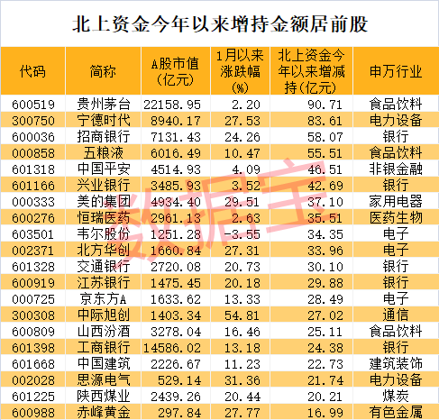 北上资金今年扫货四大行业