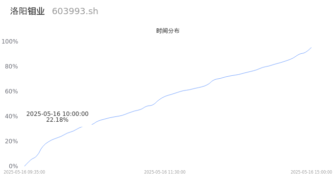 603993洛阳钼业2025年05月16日成交73.83万手,成交金额5.39亿,相较昨日缩量41.07万手,换手率0.42%,成交清淡。