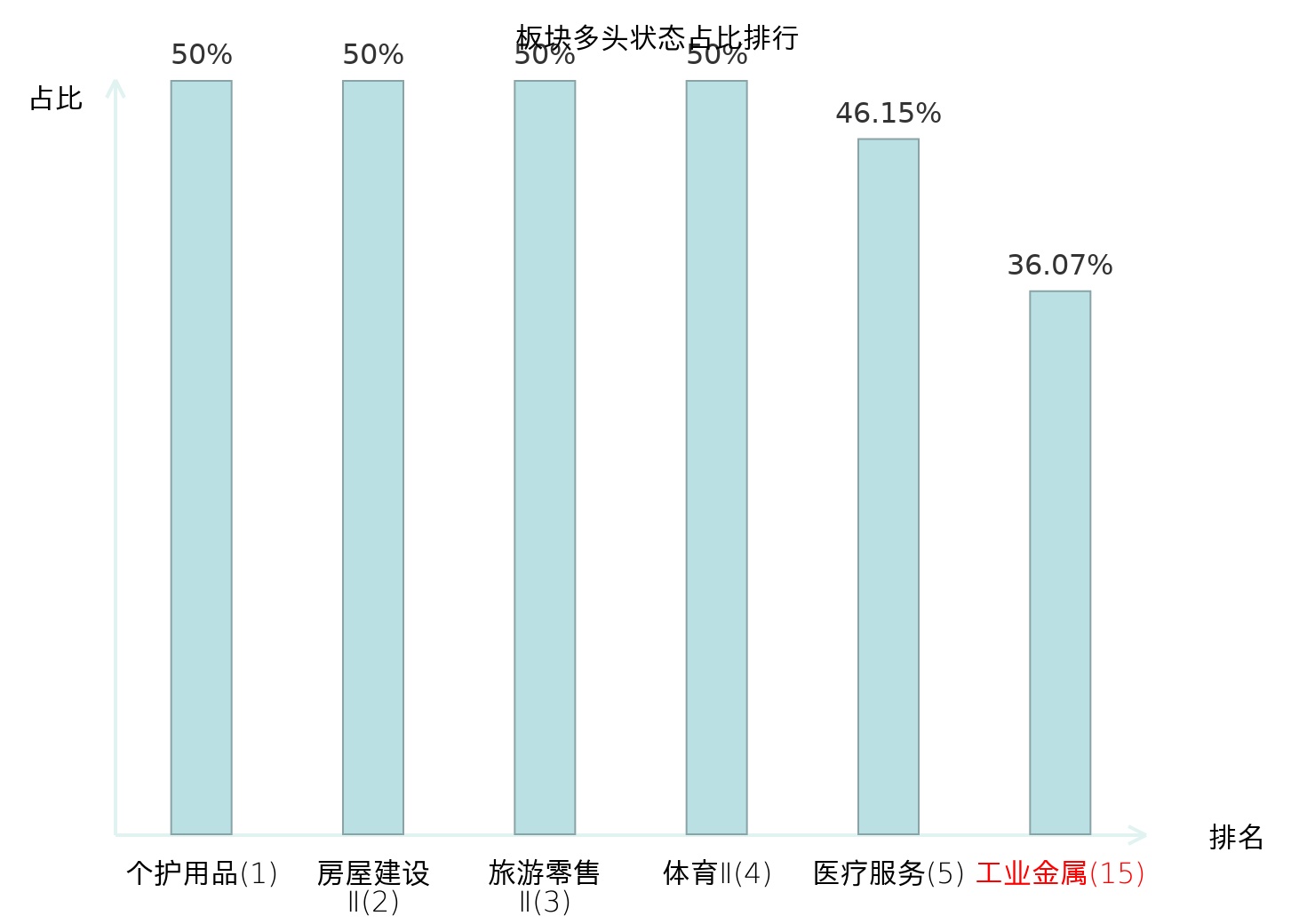 全市场所有行业板块中主力多头状态占比排名中,个护用品板块位居第一。影视院线板块名次提升最快,较昨日上升56位。