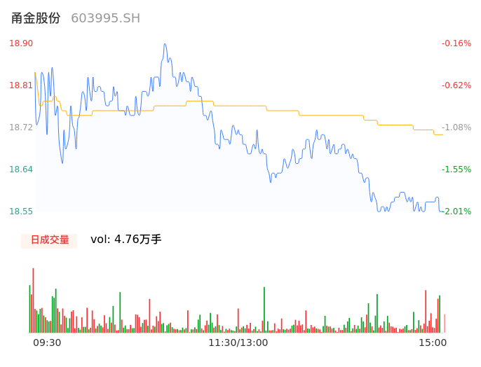 04月30日,甬金股份收报18.56,股价涨幅-1.95%,成交金额8899.60万元,换手率1.30%。