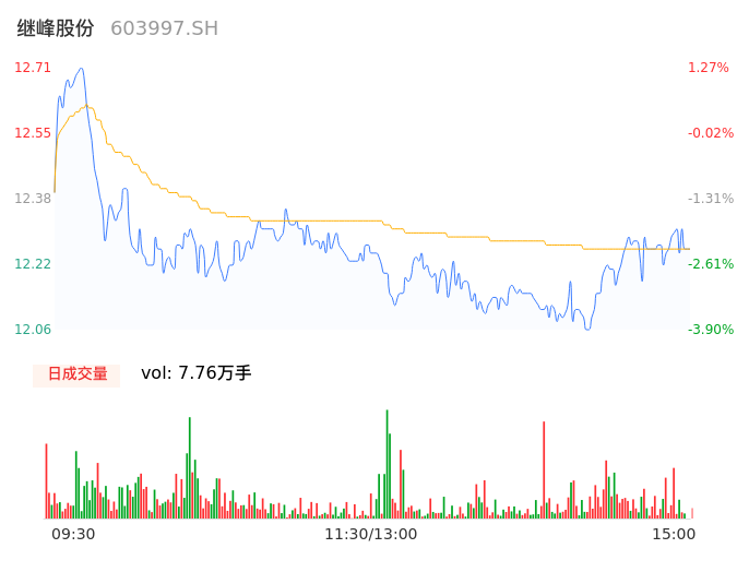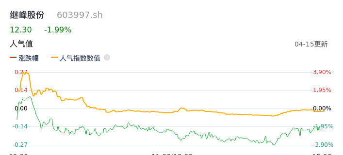 04月15日,继峰股份收报12.30,股价涨幅-1.99%,成交金额9507.53万元,换手率0.67%。