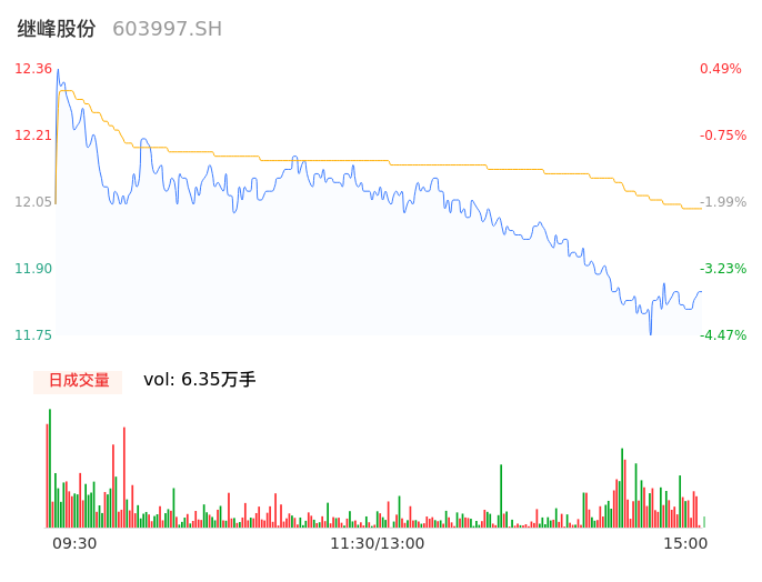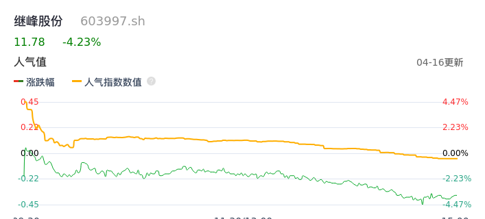 04月16日,继峰股份收报11.78,股价涨幅-4.23%,成交金额7644.65万元,换手率0.54%。
