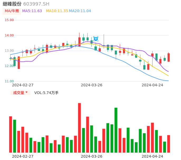 04月24日,继峰股份收报12.82,股价涨幅3.81%,成交金额7244.68万元,换手率0.49%。