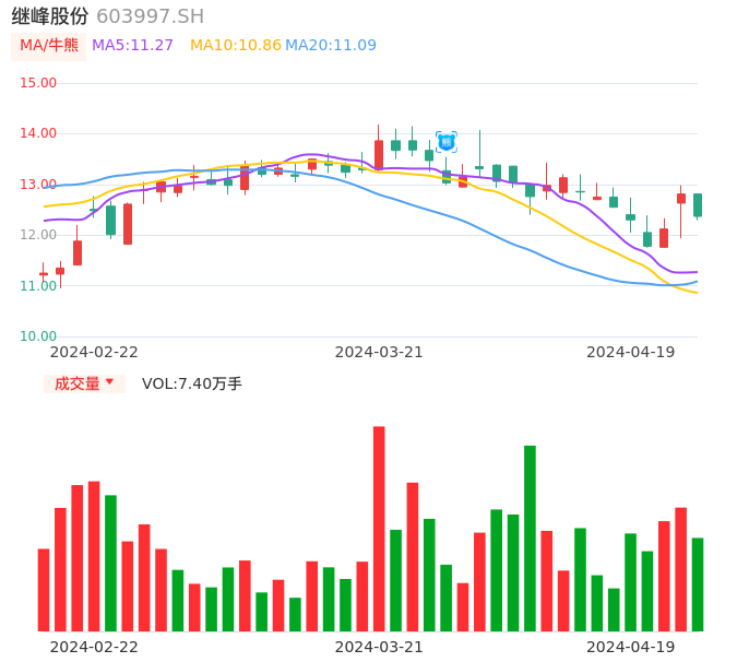04月19日,继峰股份收报12.37,股价涨幅-3.43%,成交金额9225.25万元,换手率0.63%。