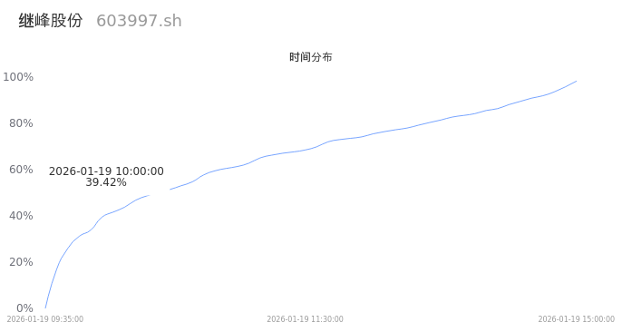 603997继峰股份2026年01月19日成交18.87万手,成交金额2.77亿,相较昨日放量1.28万手,换手率1.48%,成交清淡。
