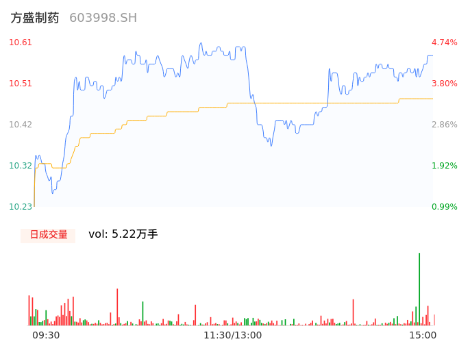 04月17日,方盛制药收报10.58,股价涨幅4.44%,成交金额5474.37万元,换手率1.20%。