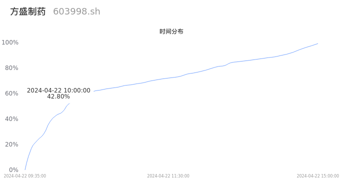 根据成交分布分析,该股票当天放量成交,成交清淡。时间上看,早盘前半小时成交量占据当天总成交量的42.8%;价格上看,成交呈现中间峰。成交分布分析主要研究股票成交的分布特性,不具有预测功能,请知悉。