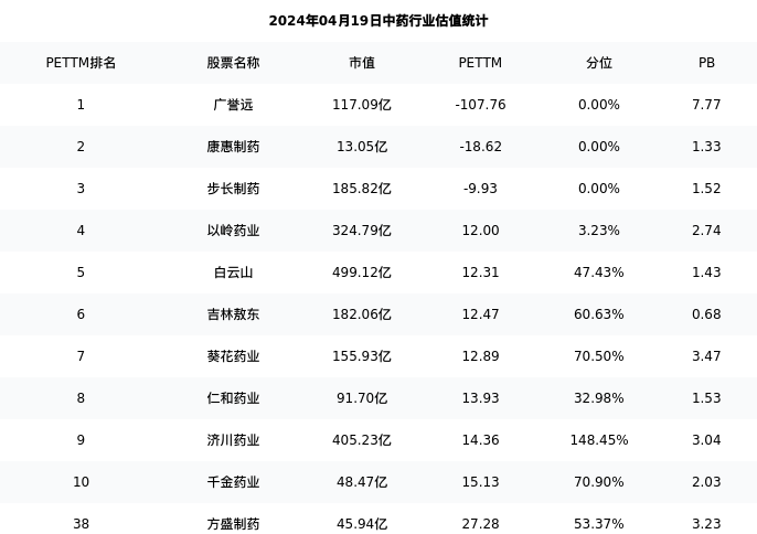 从估值角度看:方盛制药最新市盈率PETTM为27.28,在行业内排名35/71,处于53.37分位。