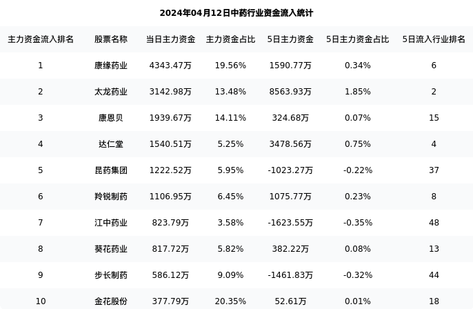 从主力资金流向来看,中药行业今日主力资金流入17.44亿元,在所有申万二级行业中排名:20/131。