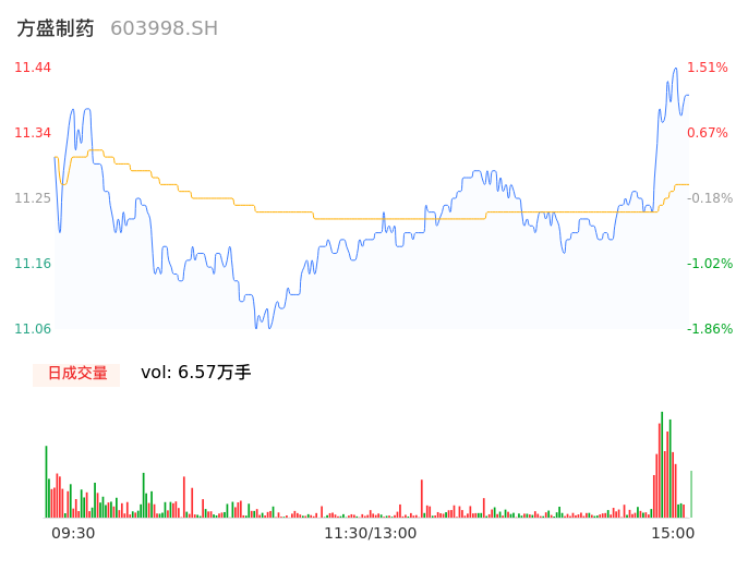 04月23日,方盛制药收报11.39,股价涨幅1.06%,成交金额7403.13万元,换手率1.51%。