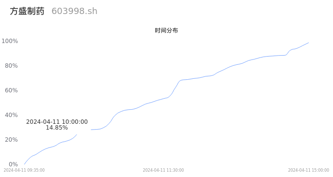 603998方盛制药2024年04月11日成交3.82万手,成交金额4166.84万元,相较昨日缩量1.42万手,换手率0.88%,成交清淡。