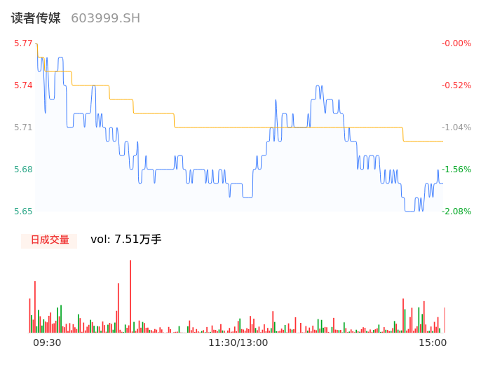 04月12日,读者传媒收报5.67,股价涨幅-1.73%,成交金额4278.40万元,换手率1.30%。