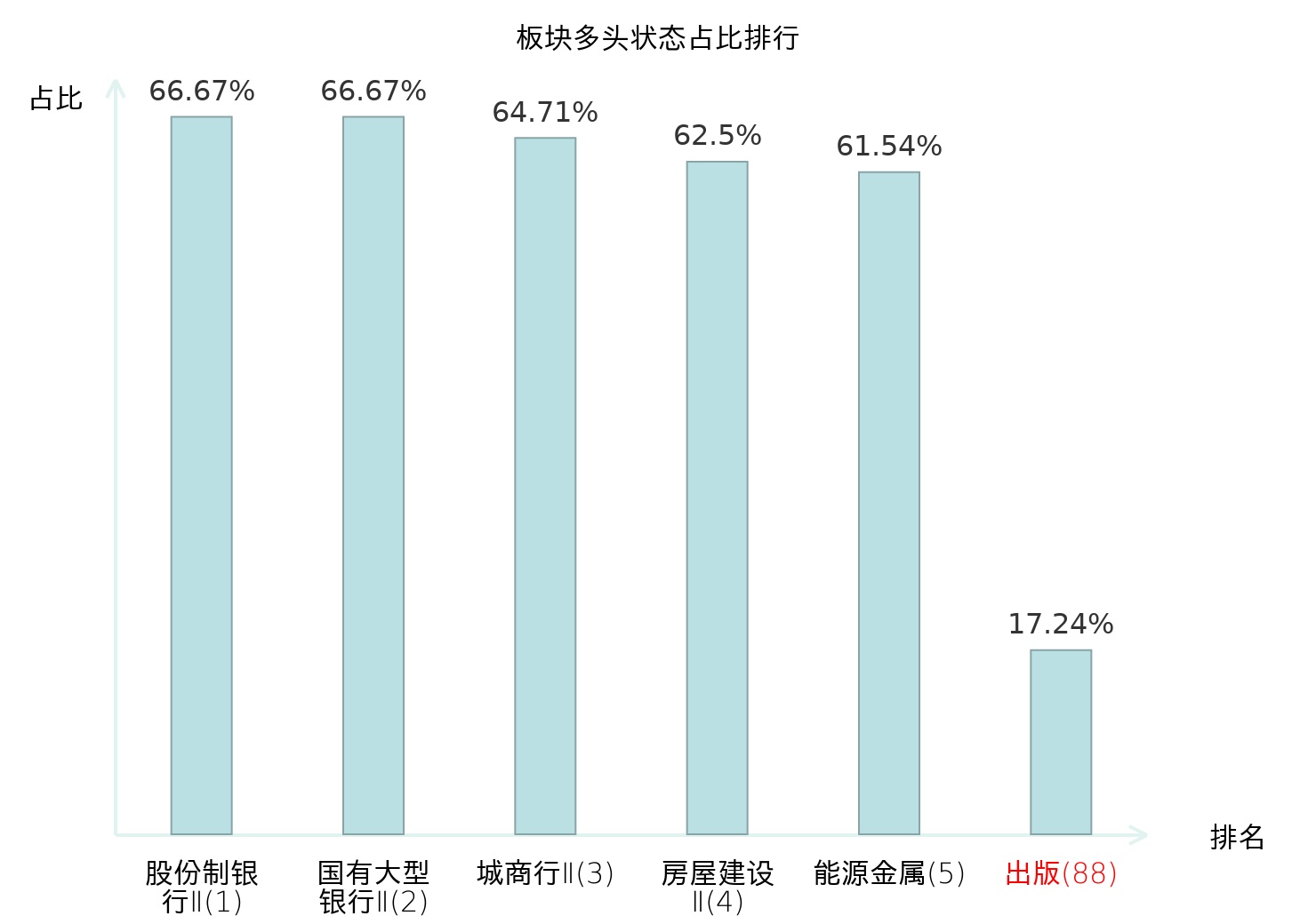 全市场所有行业板块中主力多头状态占比排名中,股份制银行Ⅱ板块位居第一。其他家电Ⅱ板块名次提升最快,较昨日上升102位。