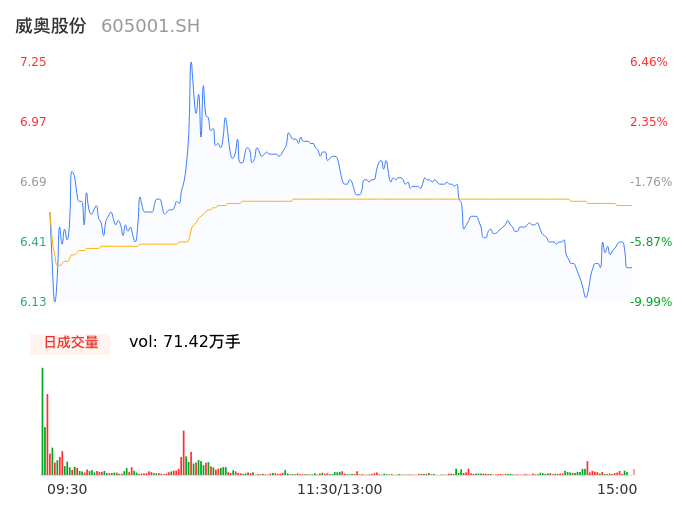04月23日,威奥股份收报6.29,股价涨幅-7.64%,成交金额4.70亿元,换手率18.18%。