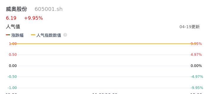 04月19日,威奥股份收报6.19,股价涨幅9.95%,成交金额3621.18万元,换手率1.49%。