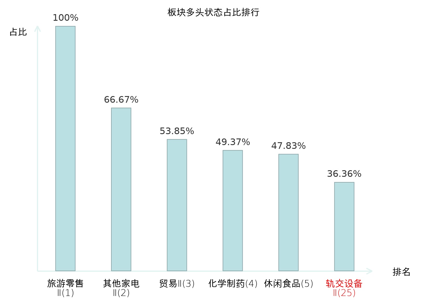 全市场所有行业板块中主力多头状态占比排名中,旅游零售Ⅱ板块位居第一。互联网电商板块名次提升最快,较昨日上升55位。