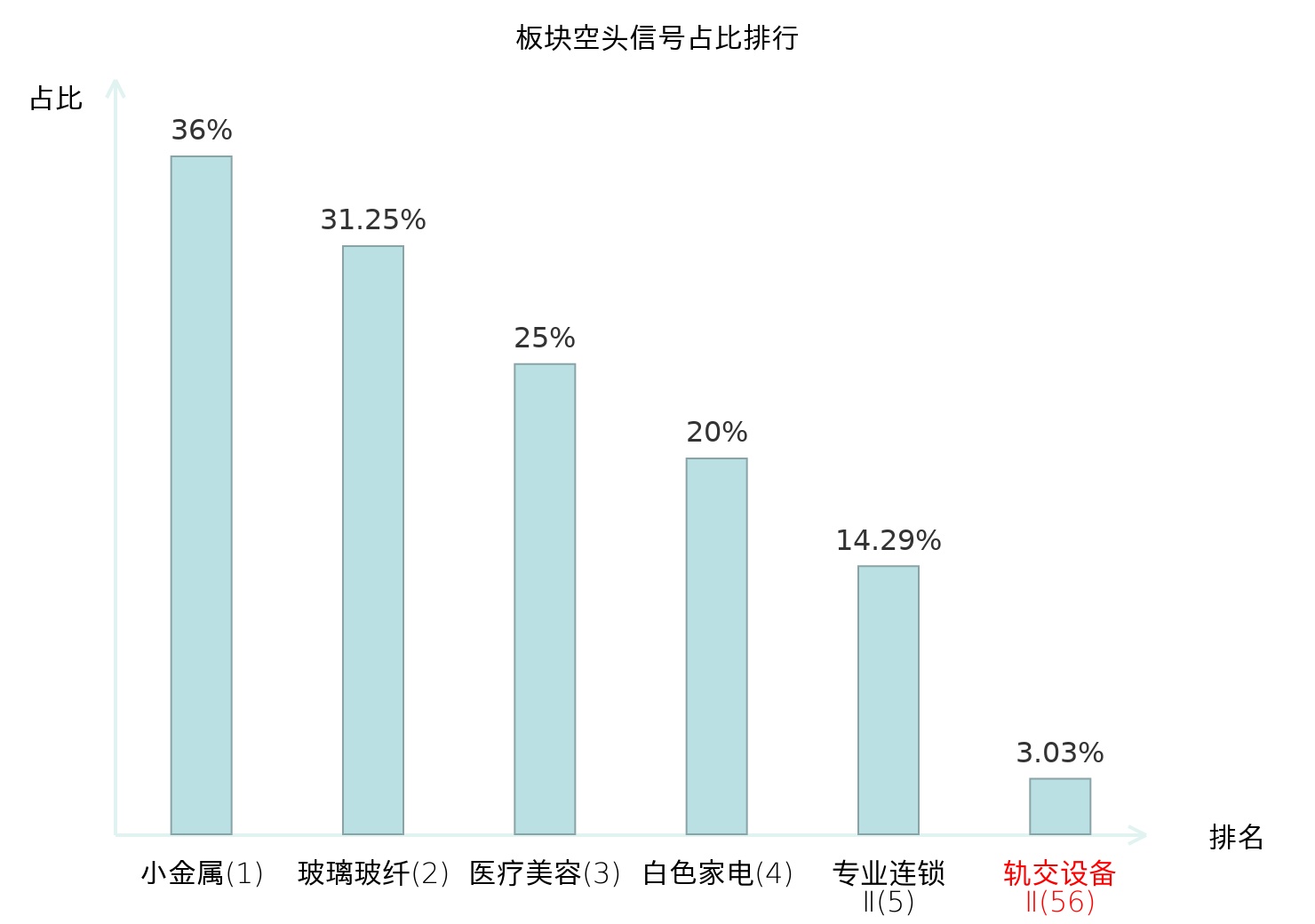 全市场所有行业板块中主力空头信号占比排名中,小金属板块位居第一。光伏设备板块名次提升最快,较昨日上升97位。