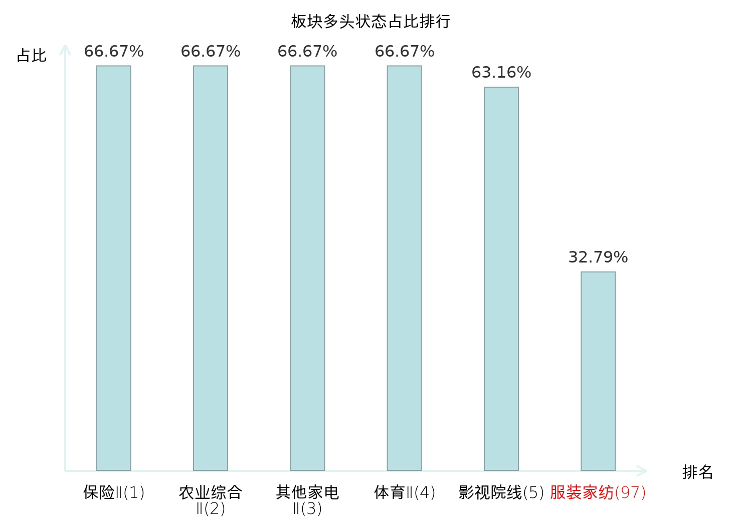 全市场所有行业板块中主力多头状态占比排名中,保险Ⅱ板块位居第一。冶钢原料板块名次提升最快,较昨日上升53位。