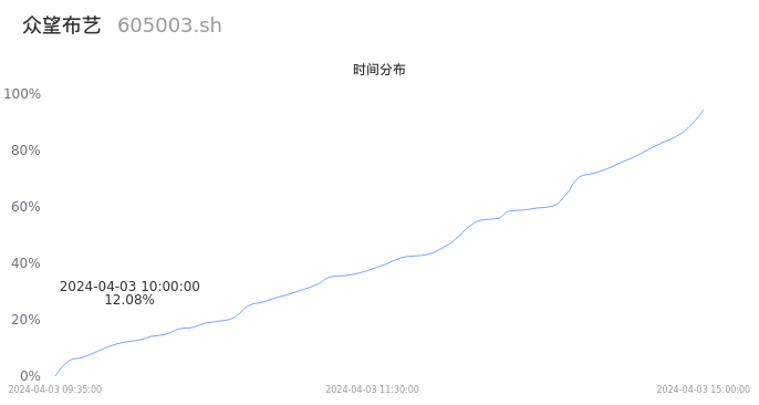 605003众望布艺2024年04月03日成交1.24万手,成交金额2183.66万元,相较昨日放量1671手,换手率1.13%,成交清淡。
