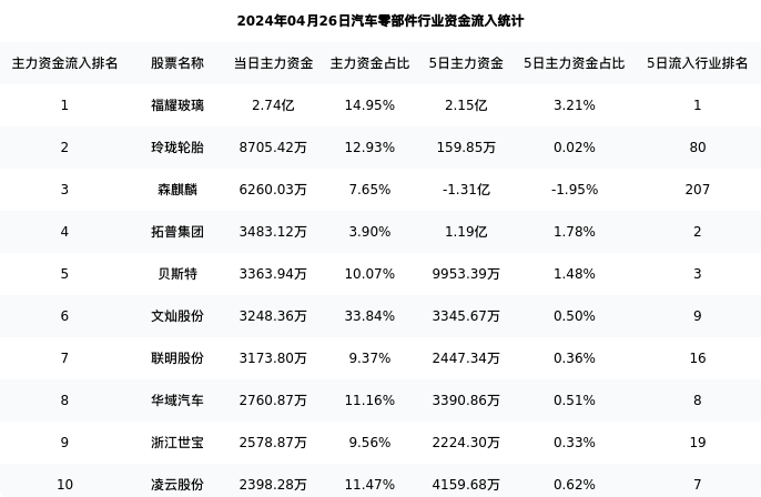 从主力资金流向来看,汽车零部件行业今日主力资金流入118.16亿元,在所有申万二级行业中排名:69/131。