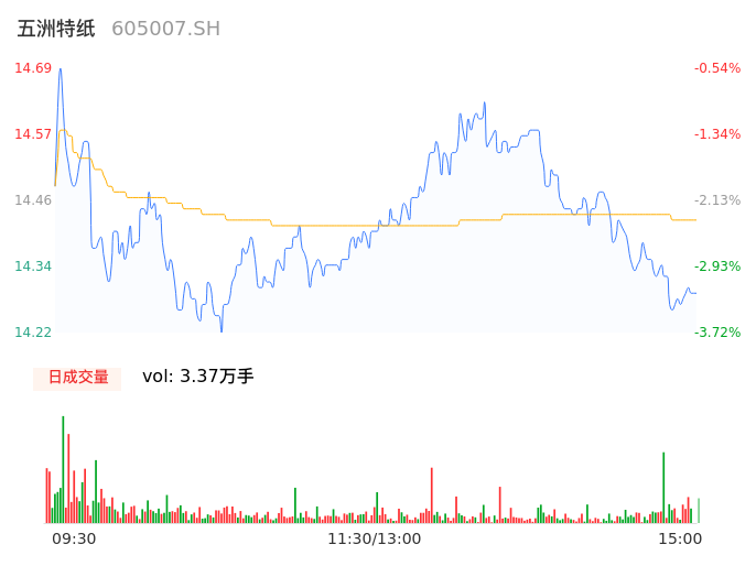 04月16日,五洲特纸收报14.23,股价涨幅-3.66%,成交金额4861.42万元,换手率0.84%。