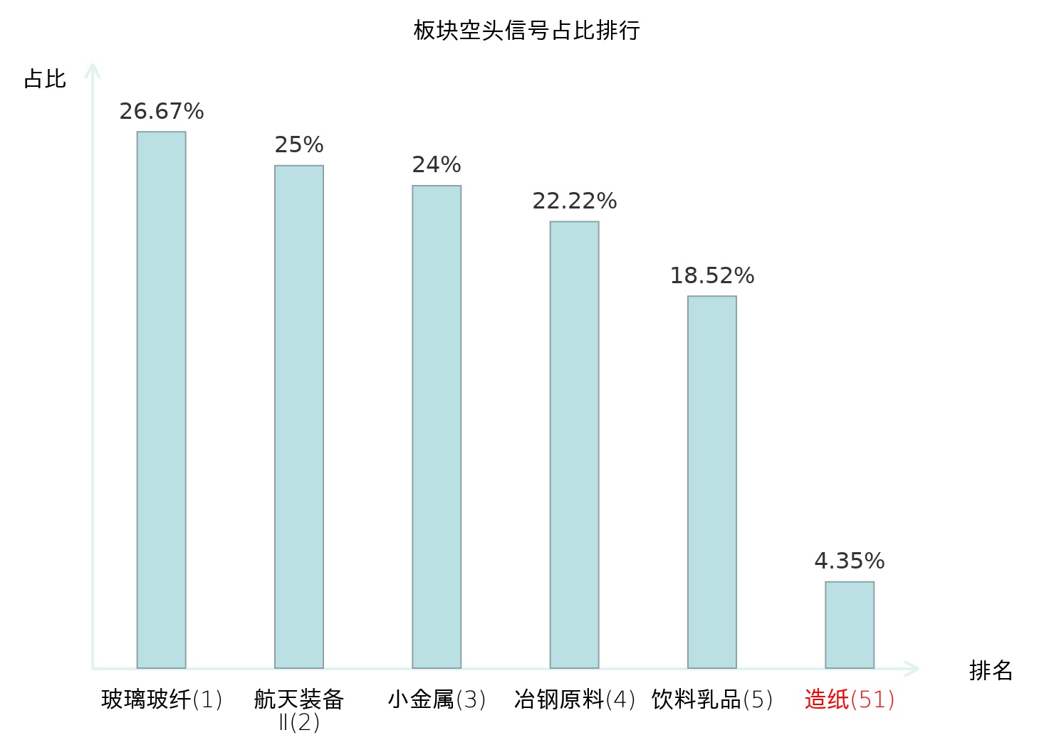 全市场所有行业板块中主力空头信号占比排名中,玻璃玻纤板块位居第一。普钢板块名次提升最快,较昨日上升113位。