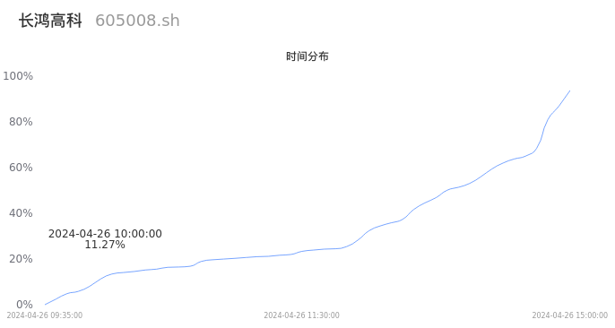 605008长鸿高科2024年04月26日成交2.15万手,成交金额3067.16万元,相较昨日放量3842手,换手率0.33%,成交清淡。
