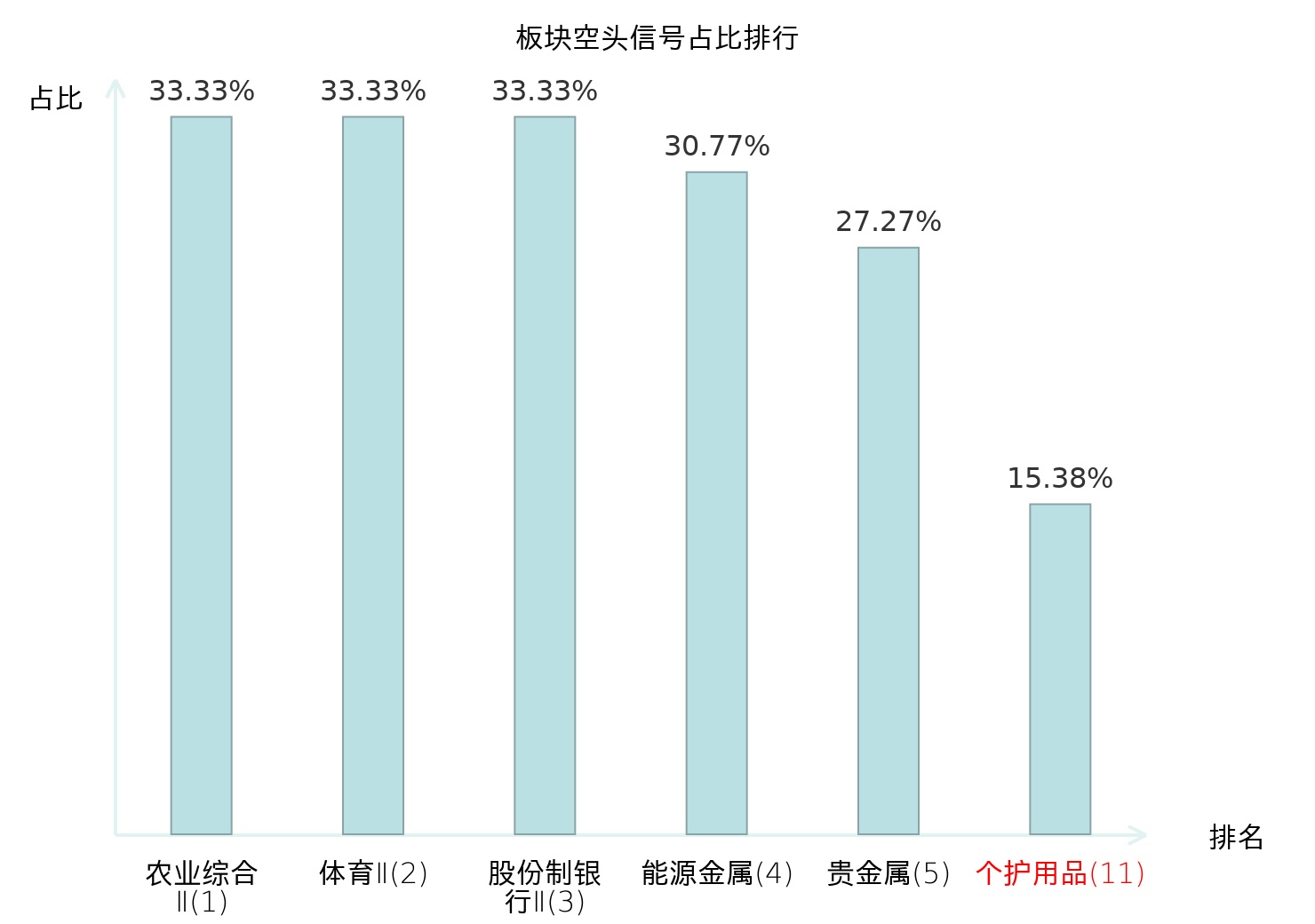 全市场所有行业板块中主力空头信号占比排名中,农业综合Ⅱ板块位居第一。出版板块名次提升最快,较昨日上升115位。