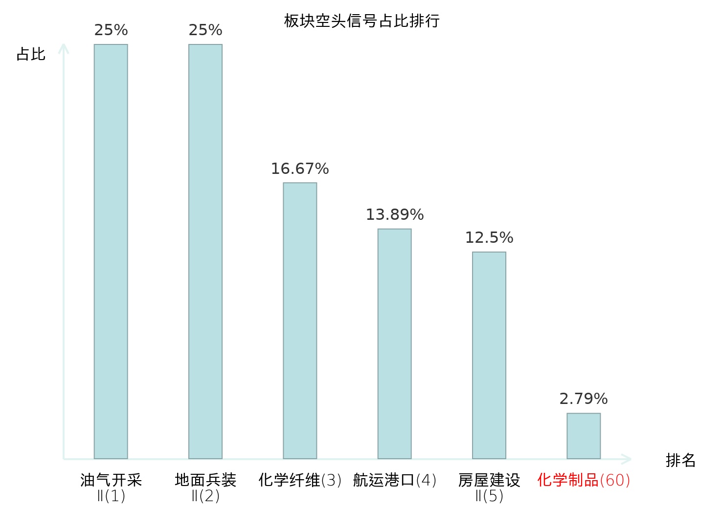 全市场所有行业板块中主力空头信号占比排名中,油气开采Ⅱ板块位居第一。化学原料板块名次提升最快,较昨日上升111位。