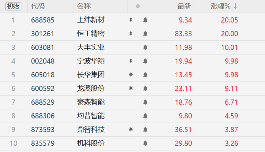 《科创板日报》7月9日讯一则“智元机器人拟入主”的消息,不仅直接将上纬新材送上了涨停,更给整个机器人板块注入了强心针。截至发稿,恒工精密、大丰实业、宁波华翔、长华集团涨停,龙溪股份、豪森智能、均普智能等跟涨。