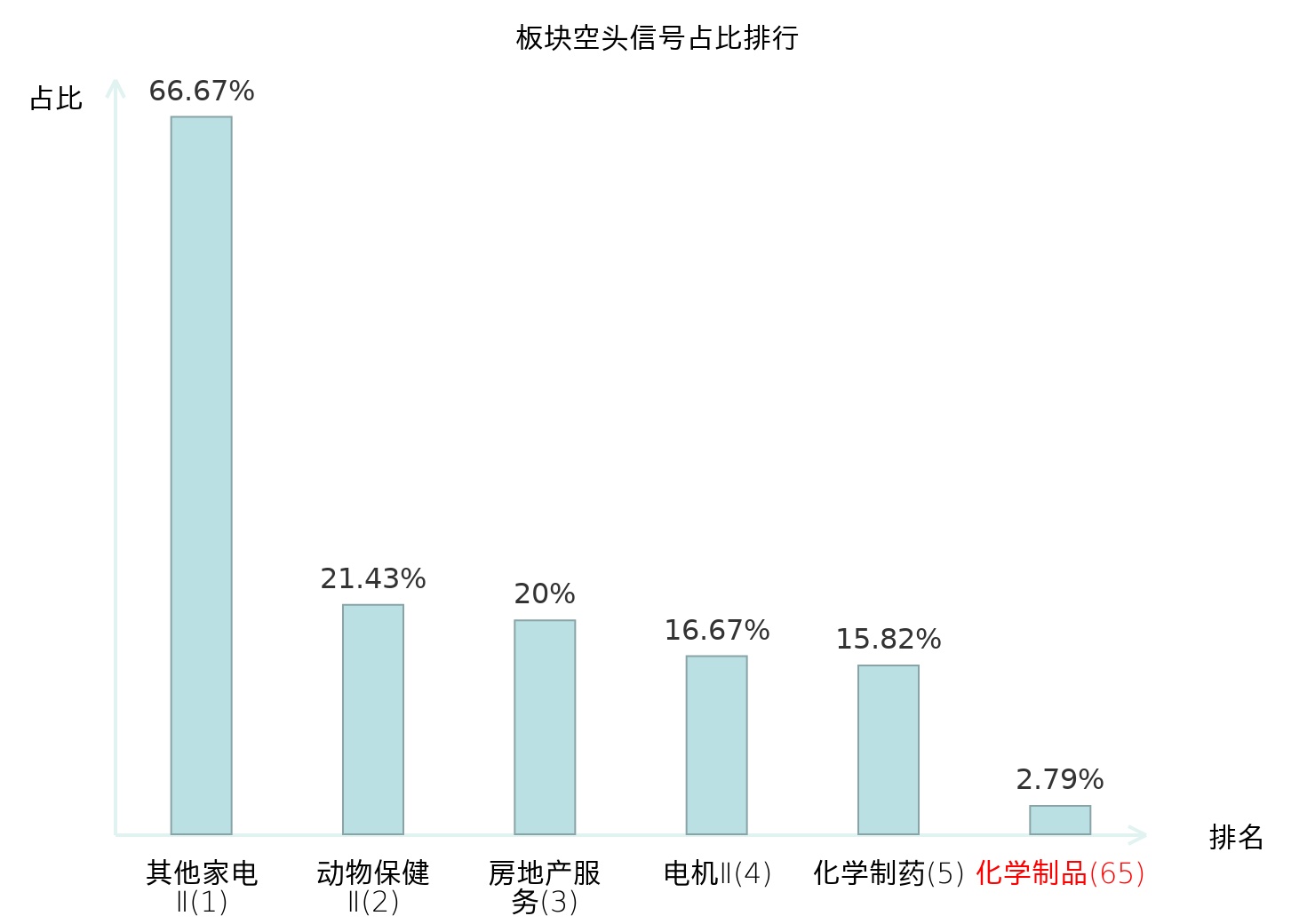 全市场所有行业板块中主力空头信号占比排名中,其他家电Ⅱ板块位居第一。家电零部件Ⅱ板块名次提升最快,较昨日上升110位。