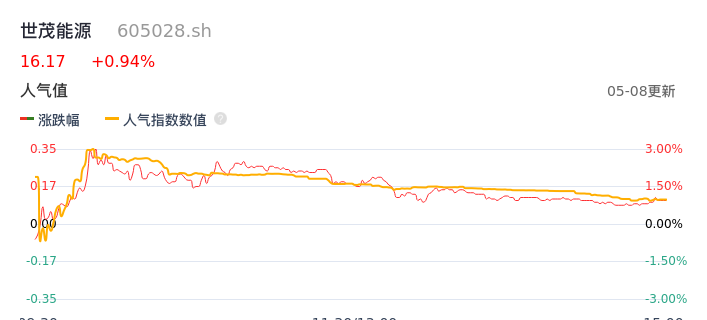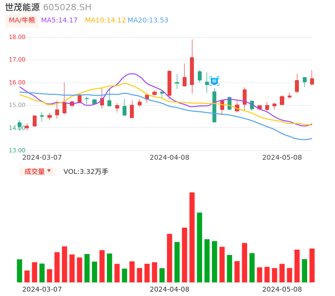 05月08日,世茂能源收报16.17,股价涨幅0.94%,成交金额5410.63万元,换手率8.31%。