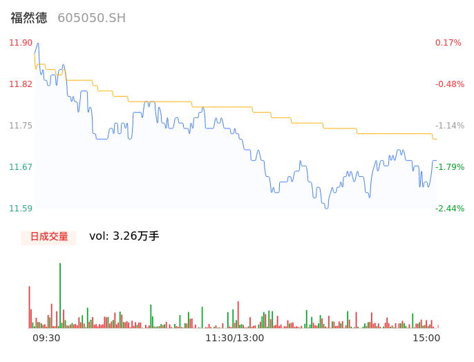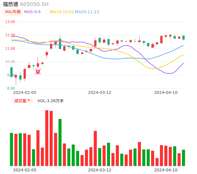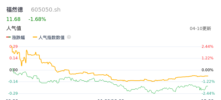 04月10日,福然德收报11.68,股价涨幅-1.68%,成交金额3822.60万元,换手率0.66%。