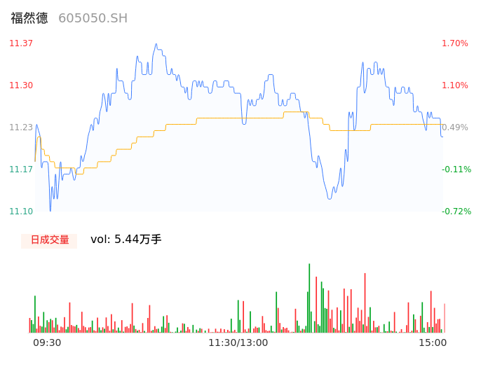 04月26日,福然德收报11.24,股价涨幅0.54%,成交金额6114.06万元,换手率1.10%。