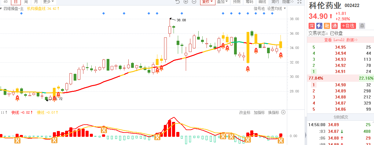 1)科伦药业-四维操盘-近期出现火箭信号且底部量柱由绿转红