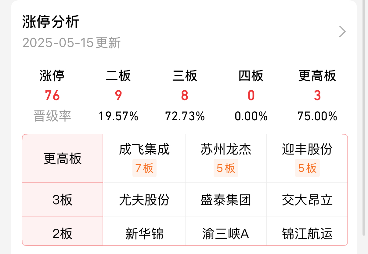 成飞集成从开局强势到了结尾,今天的7板是一个非常重要的标志,代表着资金时隔一个月重要愿意去顶7板了。一旦成功破圈,那后续的连板股会强势的一匹。因为天花板被捅破后,后续连板的高度就彻底打开了。下面的两个五板行情,苏州龙杰和迎丰股份是目前最有希望补涨的。