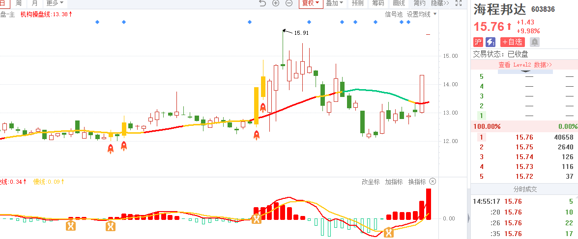 2)海程邦达-四维操盘-近期出现火箭信号且底部量柱由绿转红