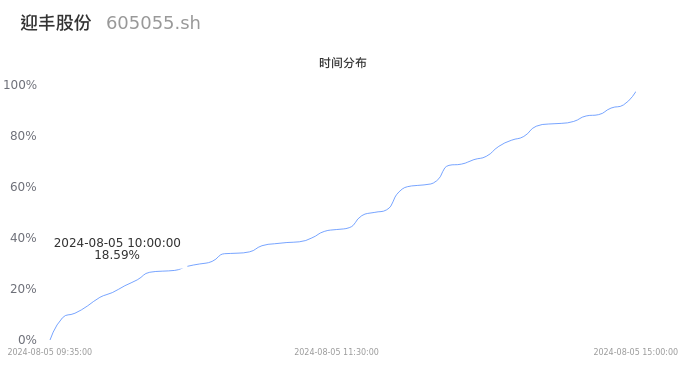 605055迎丰股份2024年08月05日成交1.49万手,成交金额617.80万,相较昨日缩量3408手,换手率0.34%,成交清淡。