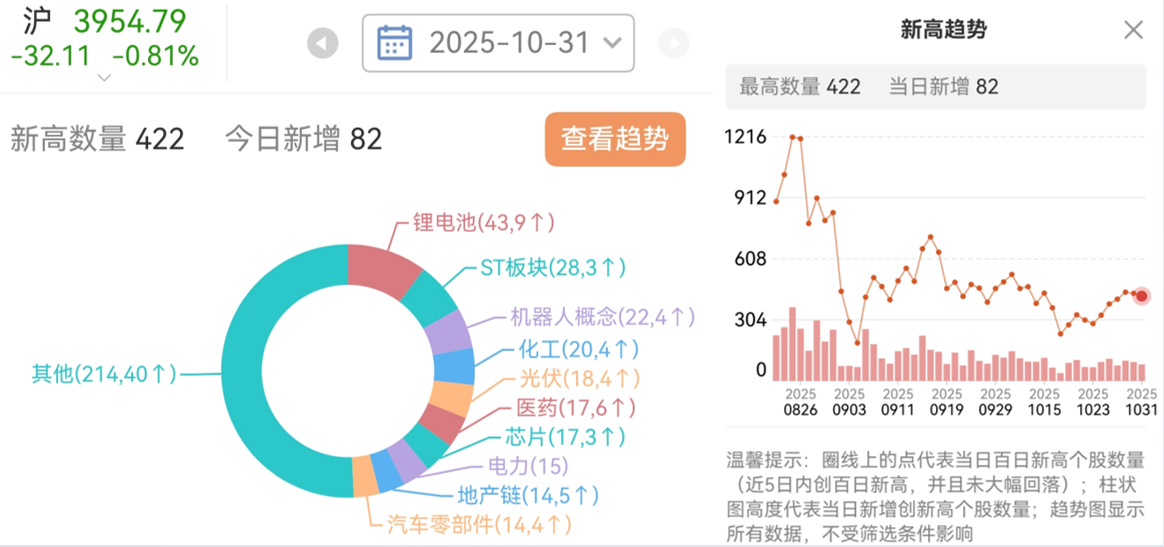 从百日新高去看,目前是轮动行情,没有绝对的主线!在锂电池>ST板块>机器人>化工,锂电(固态)成为第一