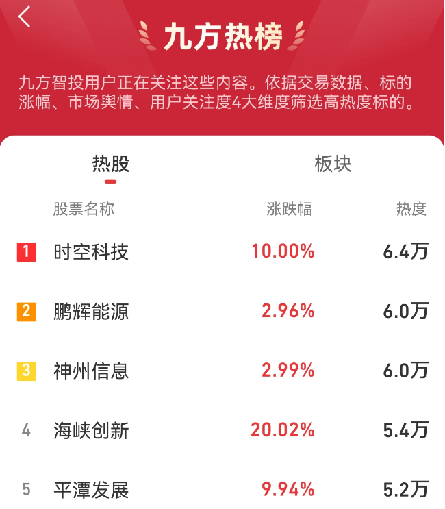 九方智投:时空科技,鹏辉能源,神州信息,海峡创新,平潭发展