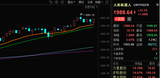 而机器人这边下午也属于主线大涨之后的低位轮动,上周批量中军大跌,本周调整了几天,在上午半导体、光刻机高潮后,资金切换到原先就有热度的机器人方向上,而且昨天上海国家会展中心举办的工博会,其实也很多的是机器人相关的个股中控技术、傅利叶、非夕科技、梅卡曼德、越疆机器人、开普勒、新松机器人、钱江机器人、节卡机器人、EX机器人、柴孚机器人悉数亮相。机器人的长期催化还没有兑现,所以这个位置还可以多关注低吸的机会。