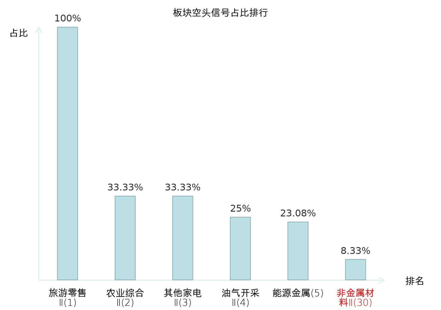 全市场所有行业板块中主力空头信号占比排名中,旅游零售Ⅱ板块位居第一。影视院线板块名次提升最快,较昨日上升105位。