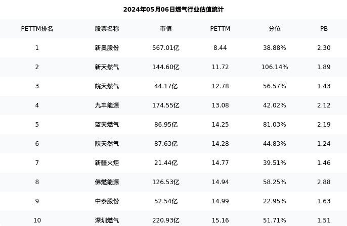 从估值角度看:九丰能源最新市盈率PETTM为13.08,在行业内排名4/29,处于42.02分位。