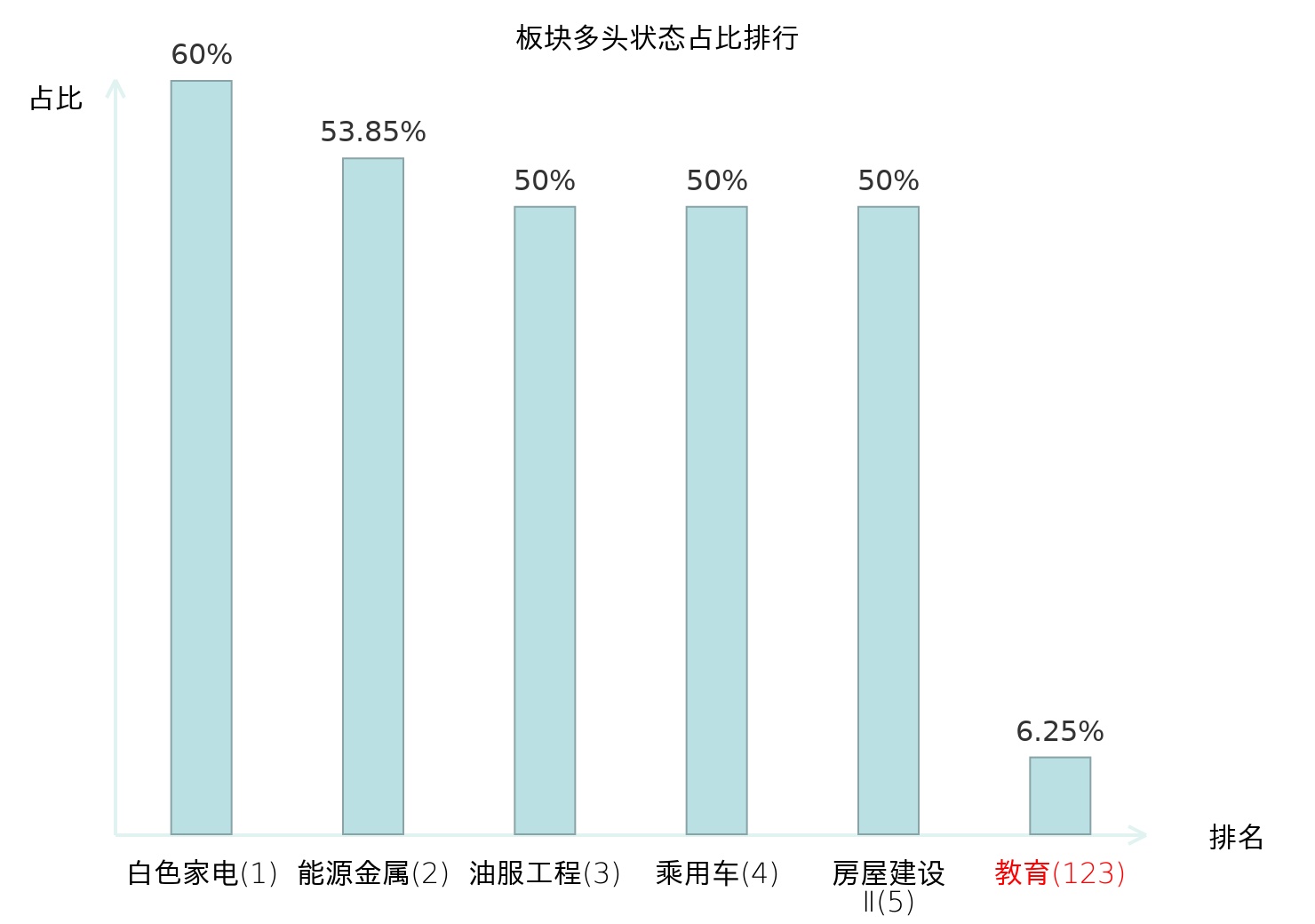 全市场所有行业板块中主力多头状态占比排名中,白色家电板块位居第一。油气开采Ⅱ板块名次提升最快,较昨日上升45位。