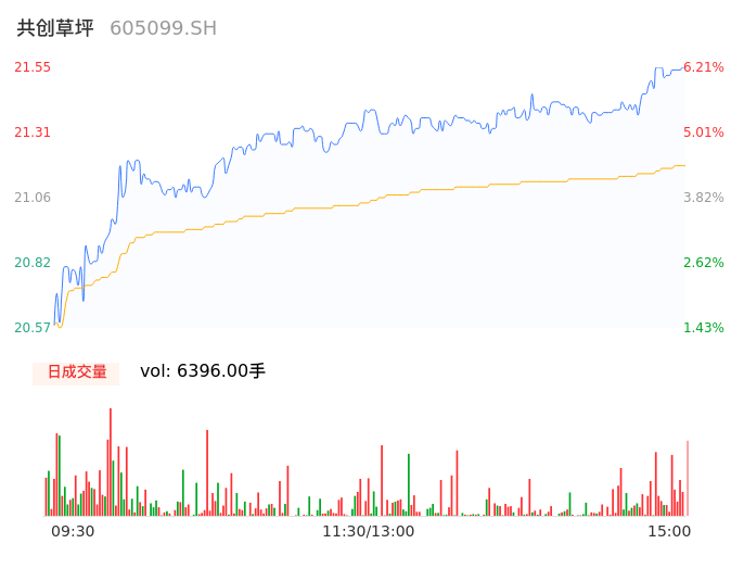 04月17日,共创草坪收报21.55,股价涨幅6.21%,成交金额1355.43万元,换手率0.16%。