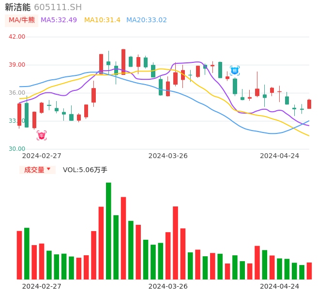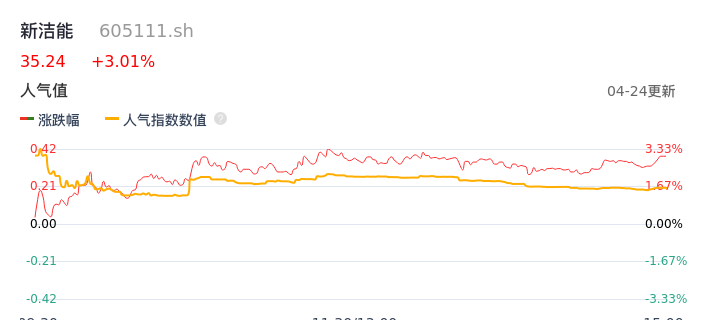 04月24日,新洁能收报35.24,股价涨幅3.01%,成交金额1.77亿元,换手率1.70%。