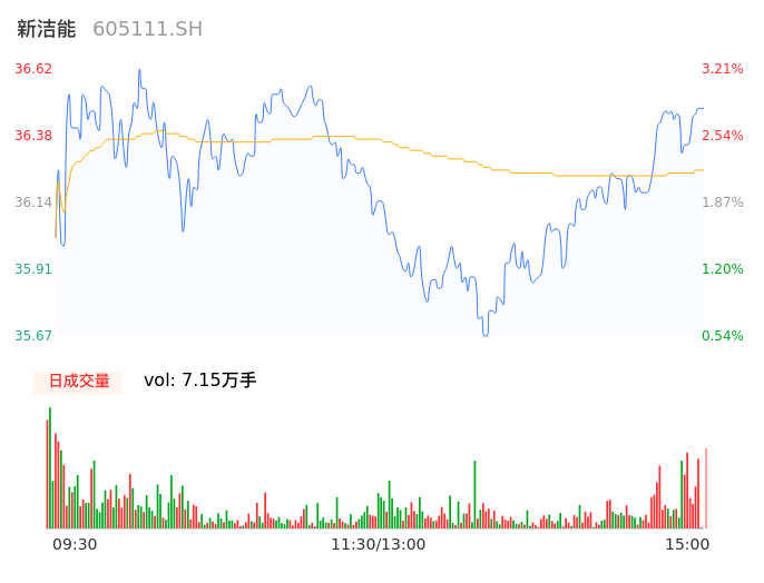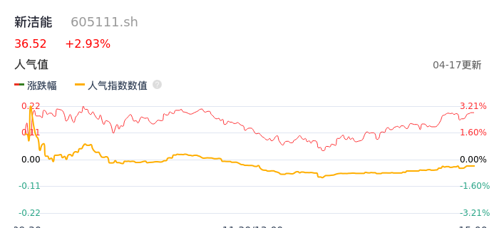 04月17日,新洁能收报36.52,股价涨幅2.93%,成交金额2.59亿元,换手率2.41%。